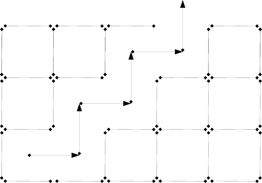 В один прекрасный осенний день страус Чак, находившийся в нижнем левом загоне, почувствовал острую необходимость отправиться по важным и неотложным страусиным делам. Он начал пробивать себе путь на волю, ломая перегородки. Сначала он сломал правую перегородку и переместился загоном правее. Потом он сломал верхнюю перегородку и переместился вверх. Далее он прокладывал себе путь по такому же принципу: ломая попеременно то правую, то верхнюю перегородку, пока, наконец, не оказался на свободе.