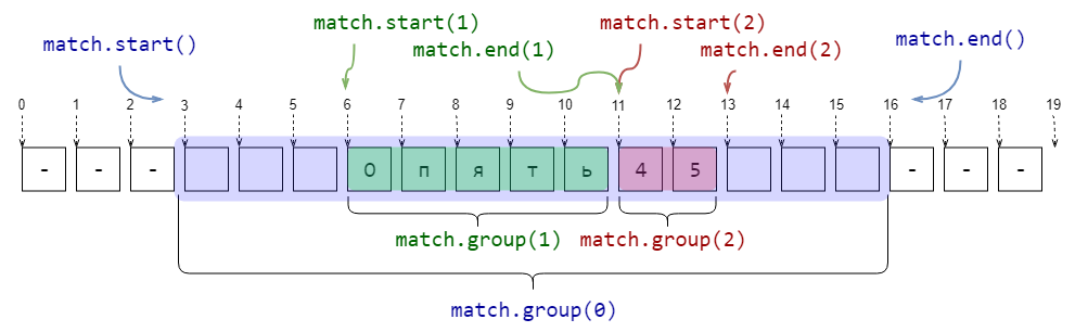 Во всех примерах ниже соответствия регулярному выражению выделяются жёлтым цветом.